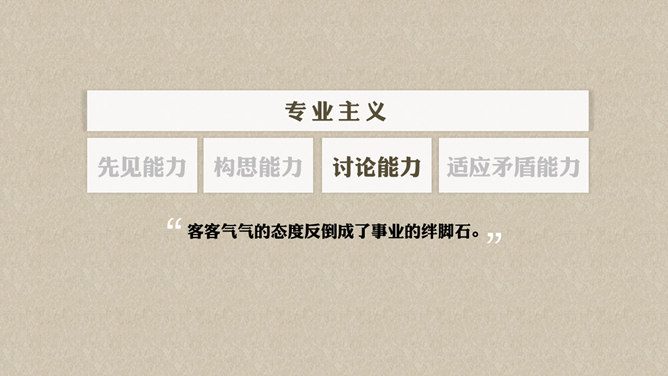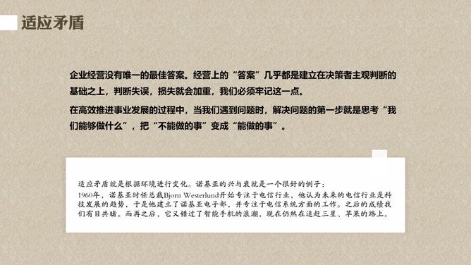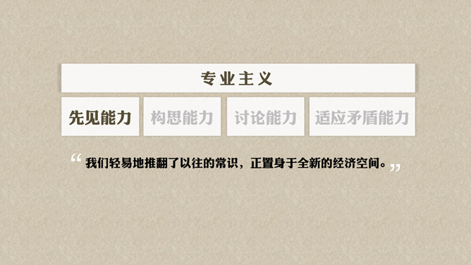 《专业主义》读书笔记PPT。企业经营没有唯一的最佳答案。经营上的“答案”几乎都是建立在决策者片面判别的根底之上,判别失误,丢失就会加重,我们有必要牢记这一点。
