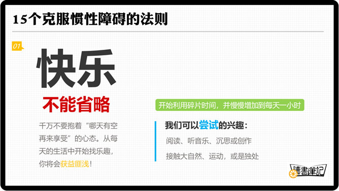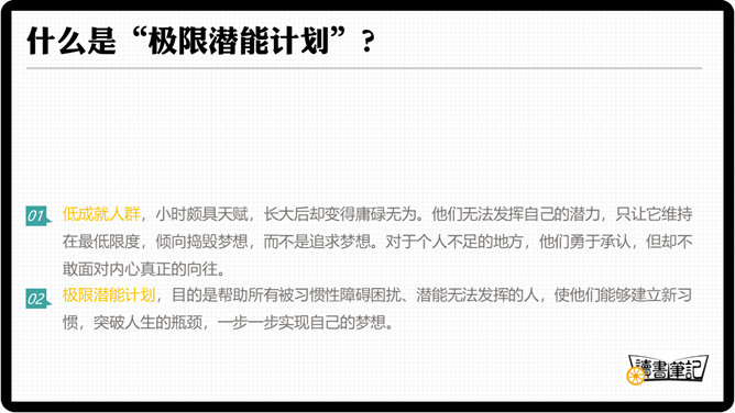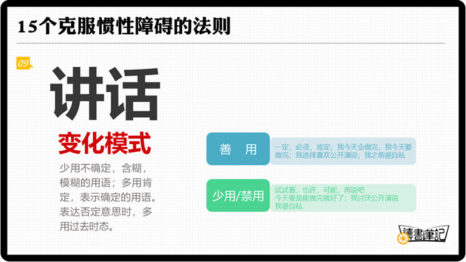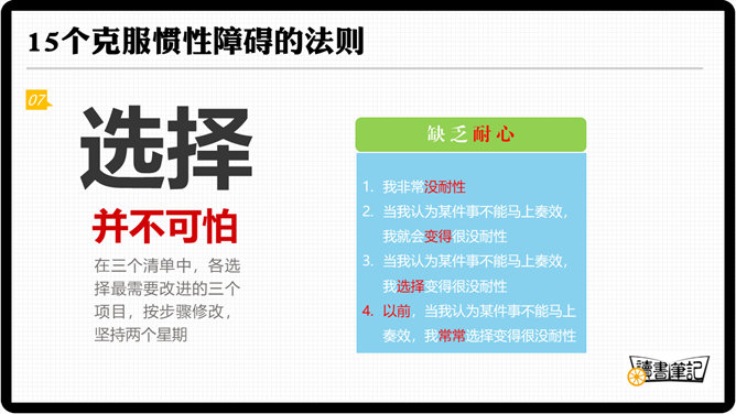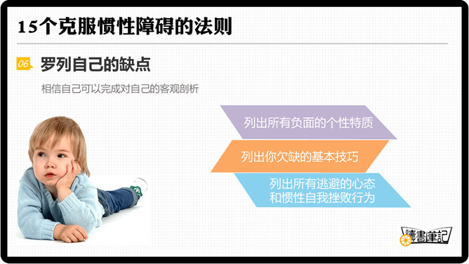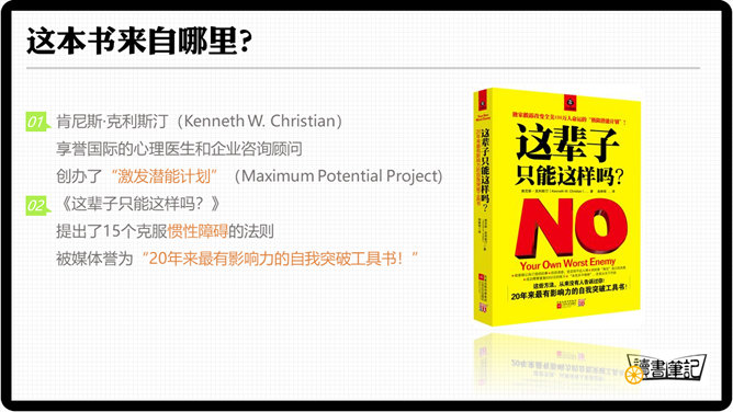 这辈子只能这样吗读书笔记PPT。如果在这份清单中看见了自己,并不代表你最终一事无成,你可能是某种类型的“自我设限族群”。无法遵循计划、方针变动频频、做事不持久、优柔寡断。