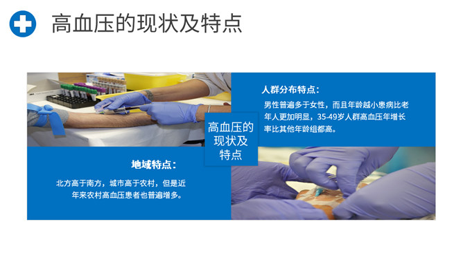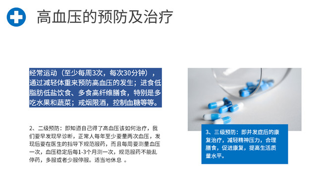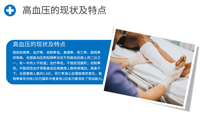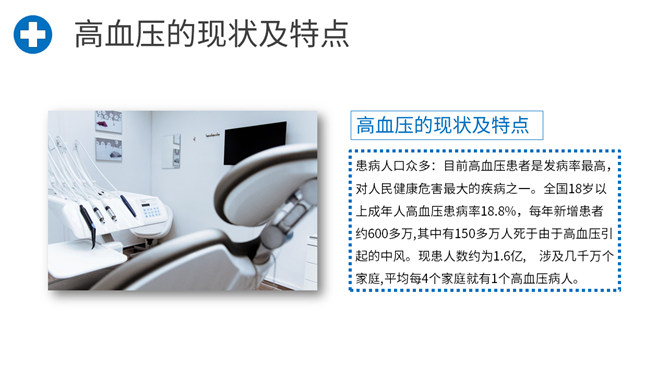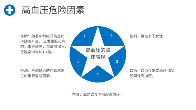 高血压防备医治知识PPT模板。高血压确诊规范与分类、现状及特点、风险因素、临床表现、防备及医治。