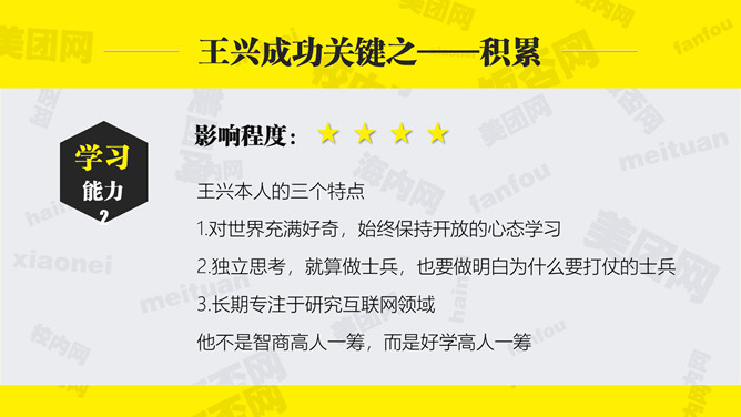 《九败一胜》读书笔记PPT。美团创始人&CEO王兴,100+亿美金堆出来的经验教训,到底他成功源于哪些因素?