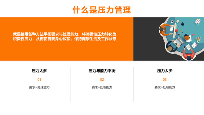 压力与心情管理培训PPT模板。有关压力、避开压力源、进步相应才能、对思想改造、缓解压力的办法、面对压力控制心情的技巧、进步相应才能。