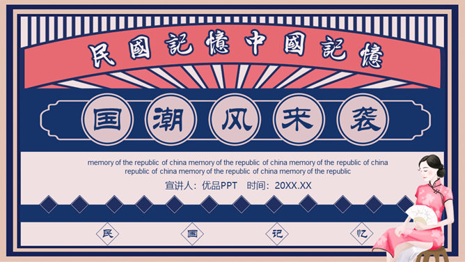 复古构思国潮民国风PPT模板。一套构思精美规划幻灯片模板,以复古中华民国时期风格规划,国潮范十足。