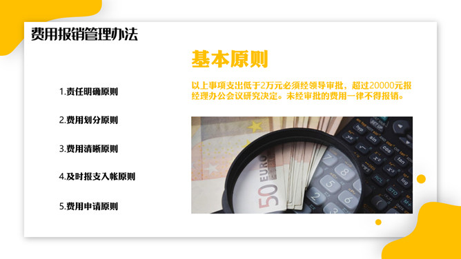 财务报销流程训练PPT模板。一、费用报销管理办法。二、业务招待费报销。三、差旅费报销。四、报销流程训练。