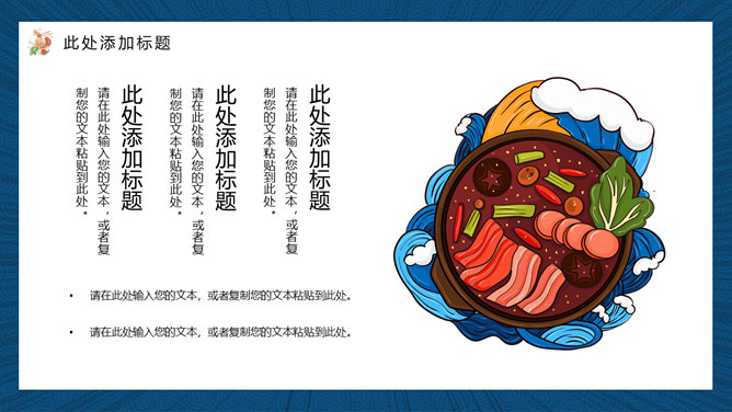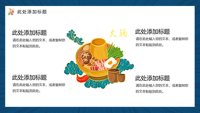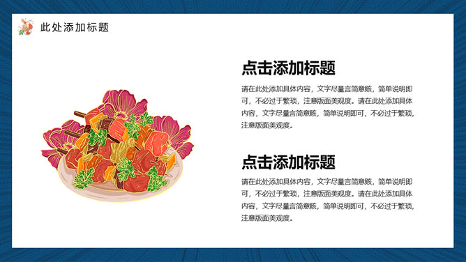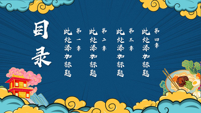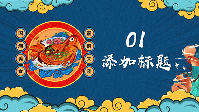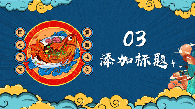 国潮风中华美食PPT模板。一套美食主题幻灯片模板,时尚国潮风格规划,合适介绍我国各地美食使用。