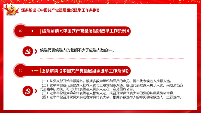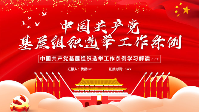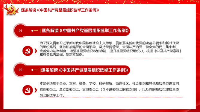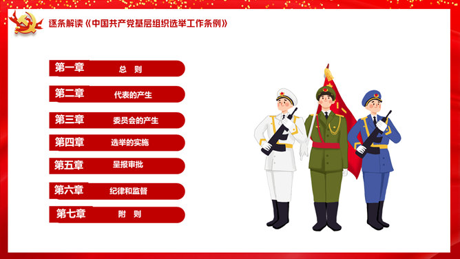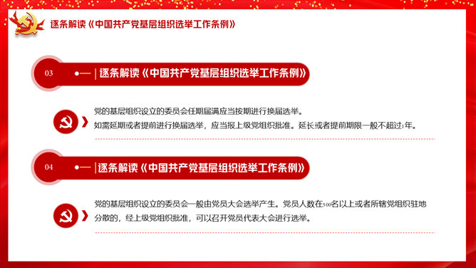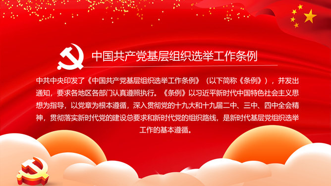 基层组织选举工作条例PPT模板。一套解读中国共产党基层组织选举工作条例的党建培训课件幻灯片模板。