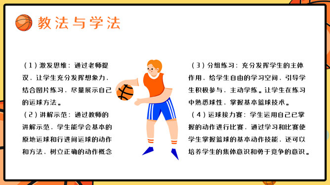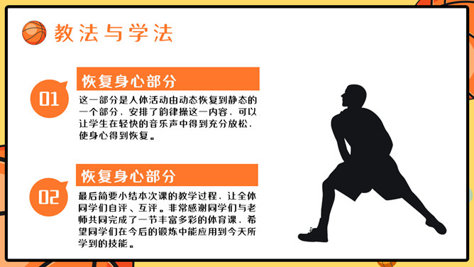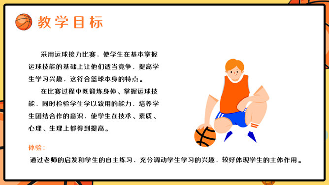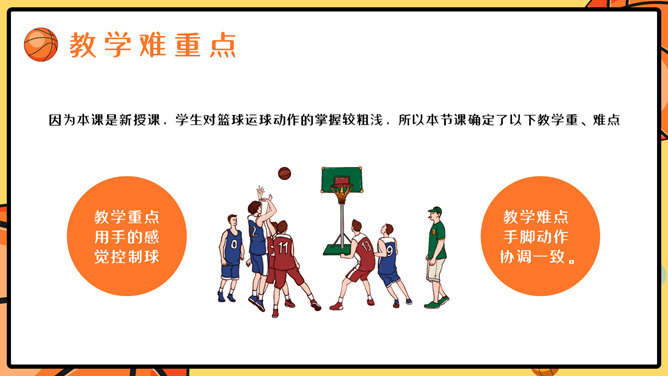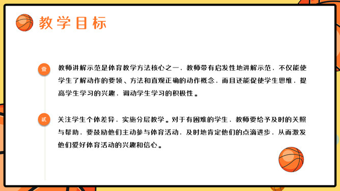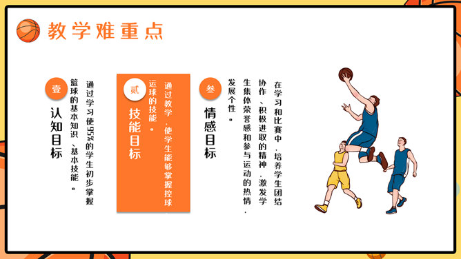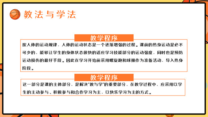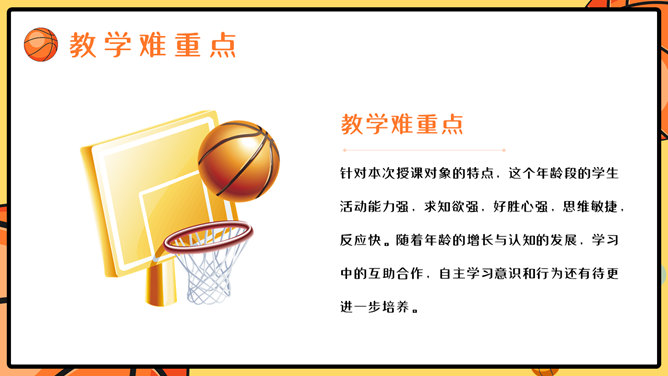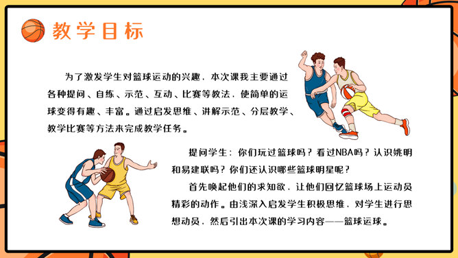 篮球体育课教学说课PPT模板。一套篮球运动主题幻灯片模板,合适制造体育课篮球课说课课件运用。
