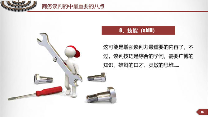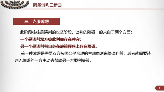 商务商洽技巧训练PPT模板。第一部分商洽实质,第二部分商洽原则,第三部分商洽者的本质,第四部分商洽的过程。