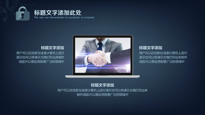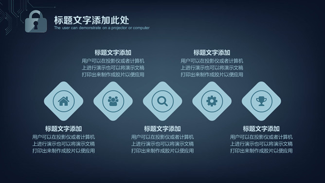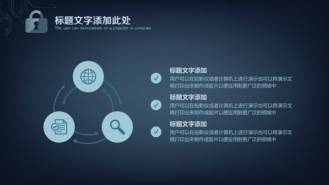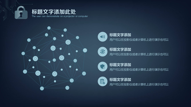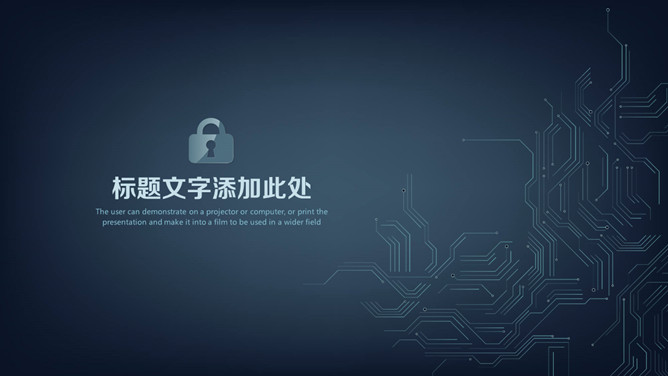 网络安全工作汇报PPT模板。一套计算机互联网网络安全主题幻灯片模板,蓝色荧光作用设计,很有科技感。