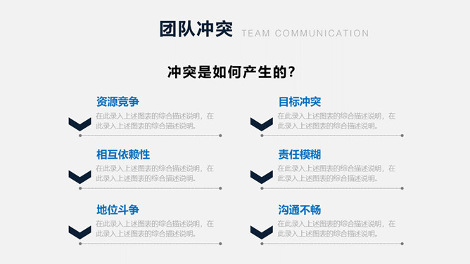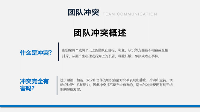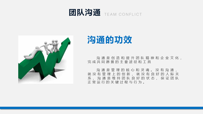 团队建设团建训练PPT模板。包含认识团队、团队鼓励、团队沟通、团队抵触、提升团队执行力几个部分。