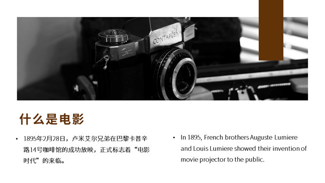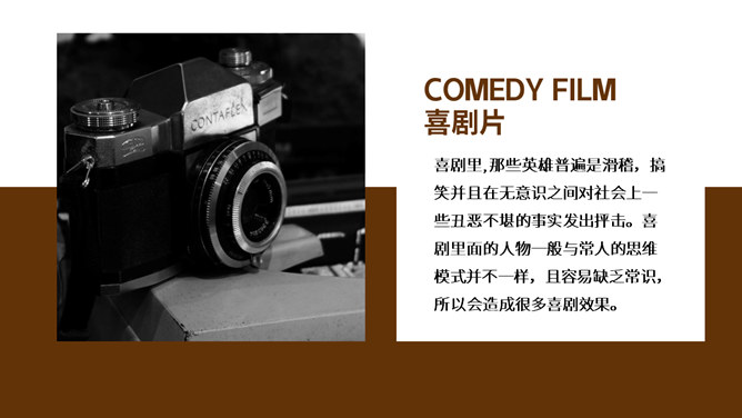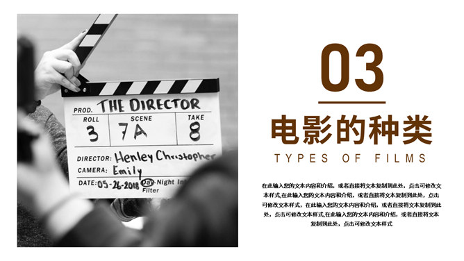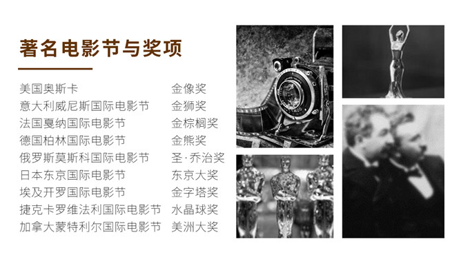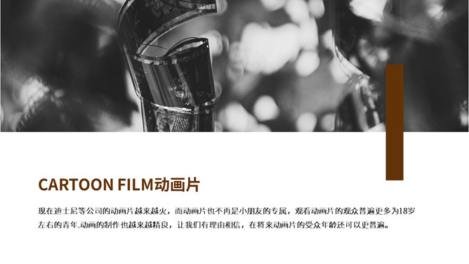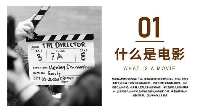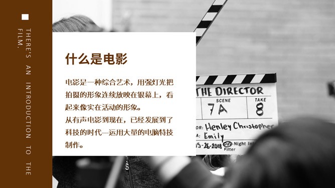 电影欣赏课PPT课件模板。一套电影影视主题幻灯片模板,合适电影基础知识,电影欣赏课程课件制作。