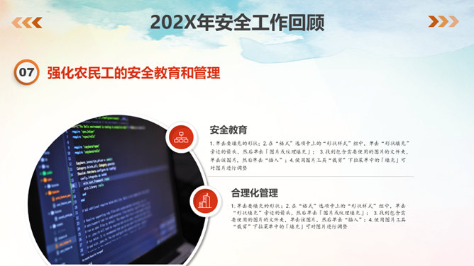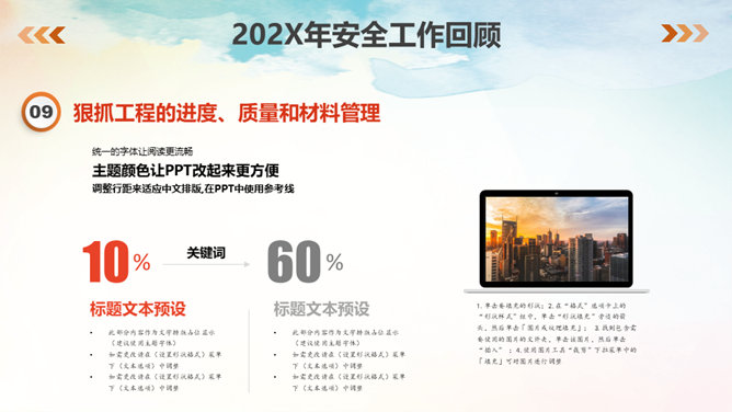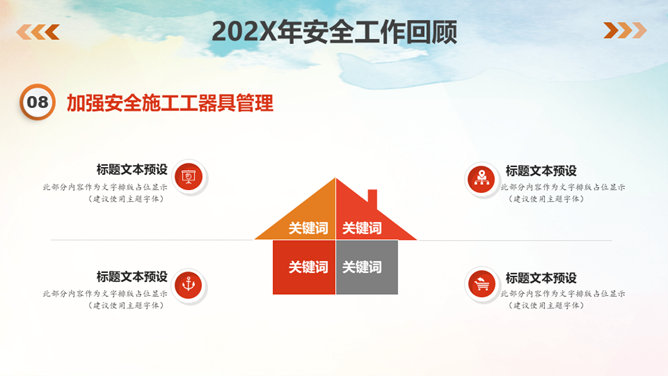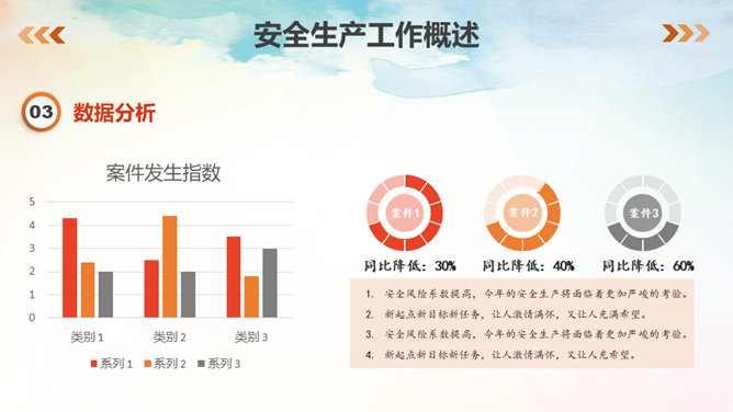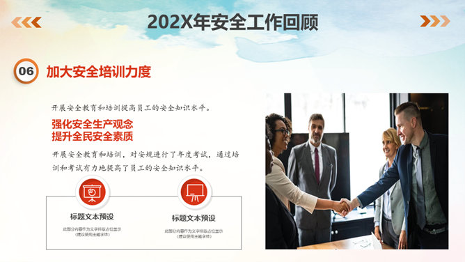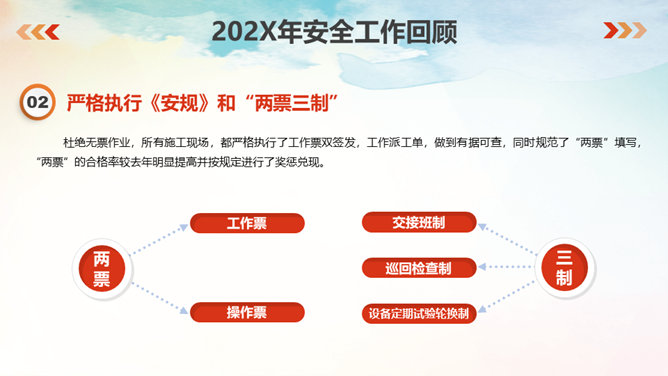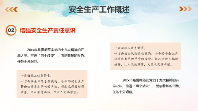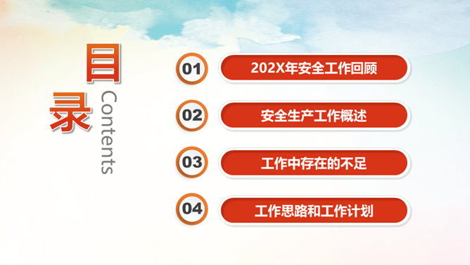 安全出产工作汇报PPT模板。一套安全出产工作总结计划汇报幻灯片模板,也适用安全出产月活动策划等。