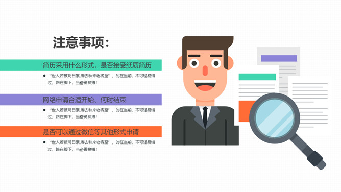 企事业单位学校招聘PPT模板。一套学校招聘幻灯片模板,扁平化规划风格,好看的动态播放效果。