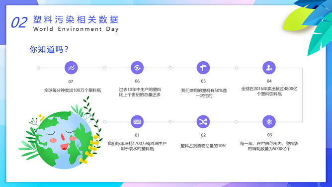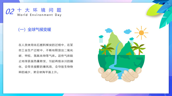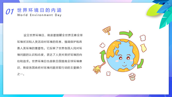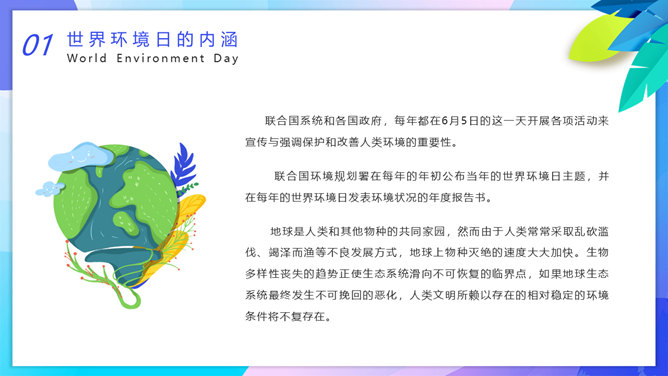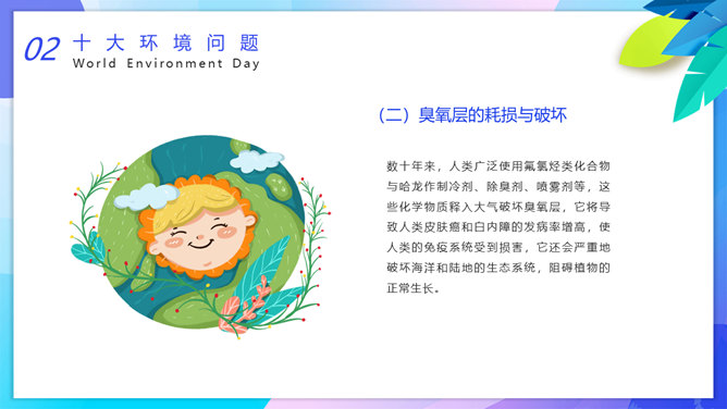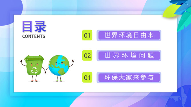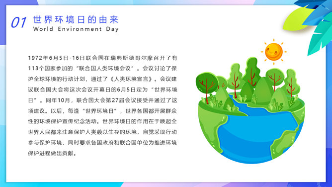 国际环境日主题班会PPT模板。一套国际环境日主题幻灯片模板,卡通设计风格,设计国际环境日班会等。