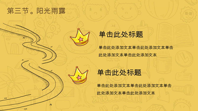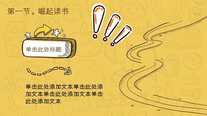 开学第一课学生返校PPT模板。一套心爱卡通风格幻灯片模板,新学期开学返校主题,手绘纸片设计效果。
