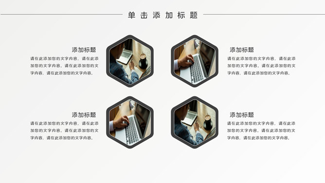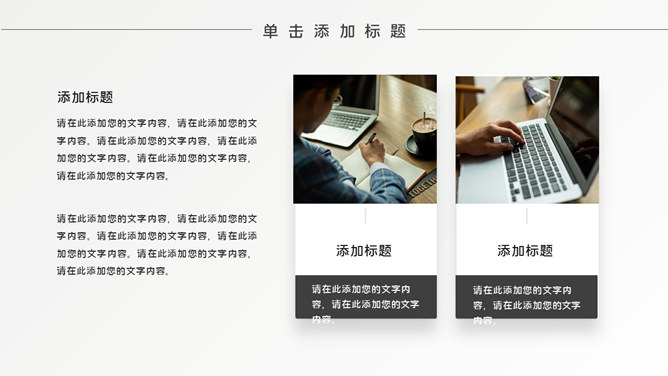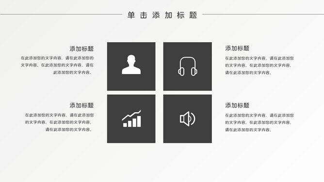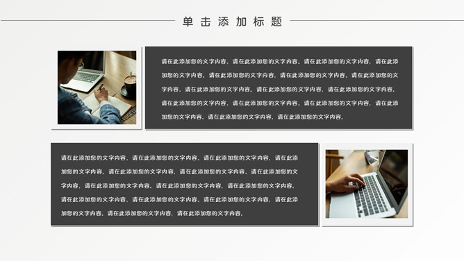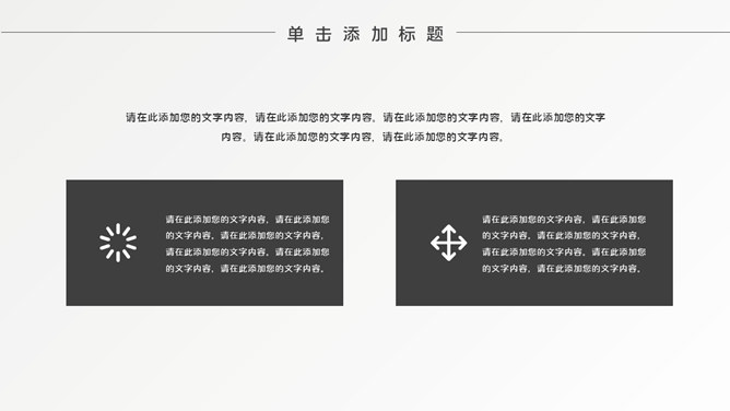 简约时髦黑灰通用PPT模板。一套通用幻灯片模板,简约设计,黑灰配色,素雅时髦,适合工作汇报、职业规划等用途。
