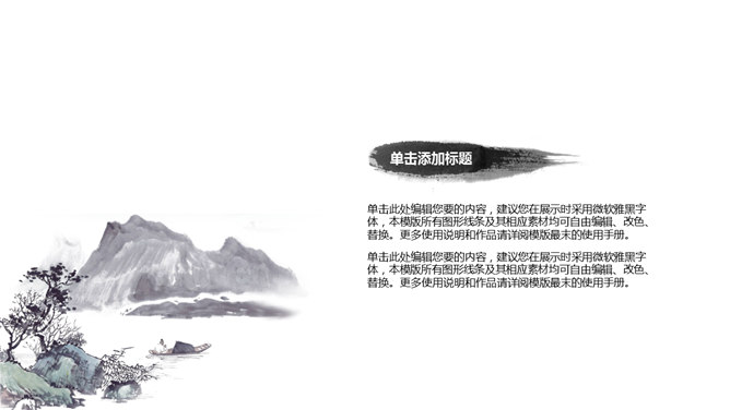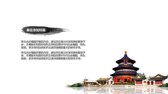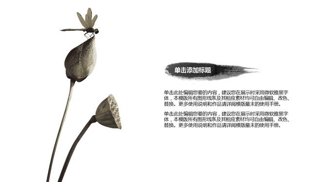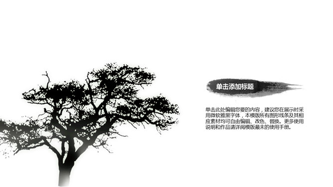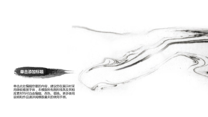 龙翔九霄简练中国风PPT模板。一份水墨中国风幻灯片模板,主页以水墨龙为首要元素,设计风格简练。