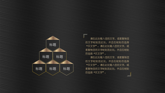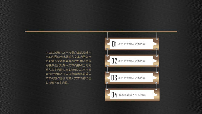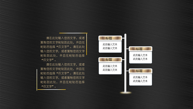 质感金属拉丝效果PPT模板。一份金属拉丝质感视觉效果的幻灯片模板,给高端豪华的感觉,适合企业品牌宣传等用处。主张安装字体:方正兰亭大黑_GBK。