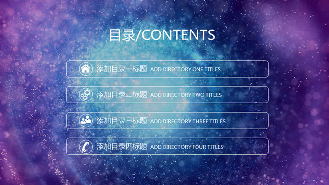 炫酷璀璨富丽动态PPT模板。一份动态效果十分炫酷富丽的幻灯片模板,紫色梦境空间旋转动态效果,页面丰富。