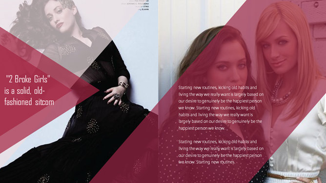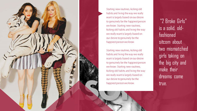 美剧《破产姐妹》主题PPT模板。一份以热播美剧《破产姐妹》为主题的PPT模板,时尚杂志风设计风格。