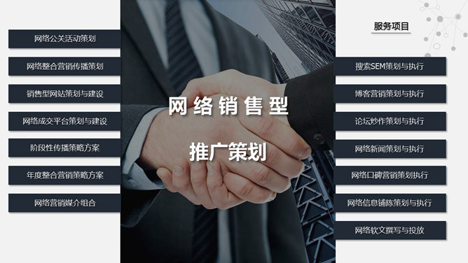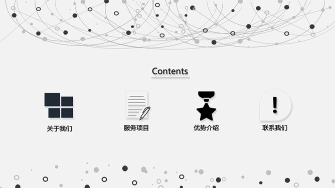 科技感网络公司简介PPT模板。一份素雅简练的网络公司介绍幻灯片模板,精约现代,很有科技感。