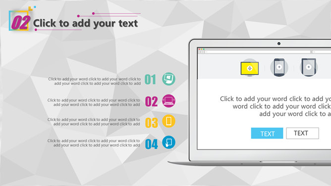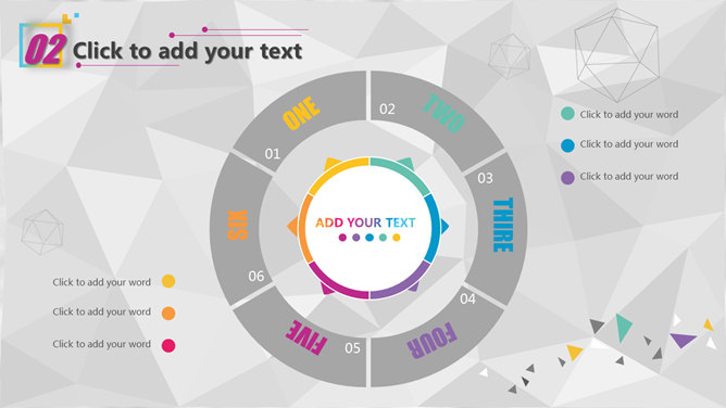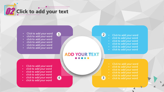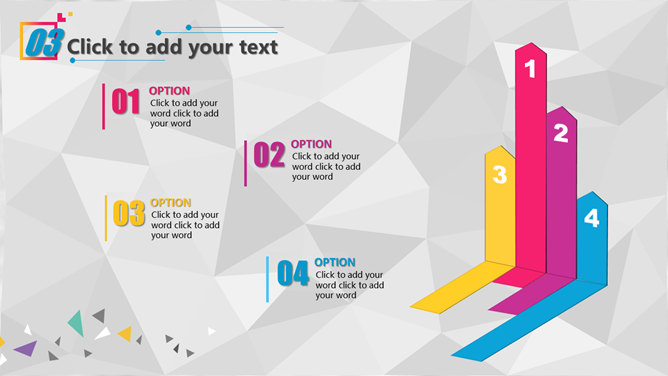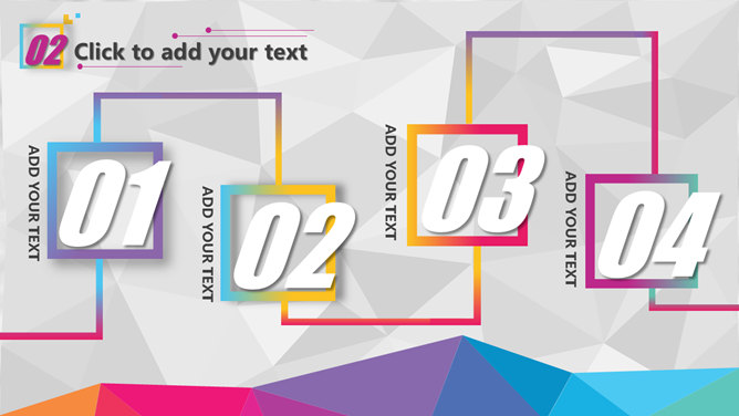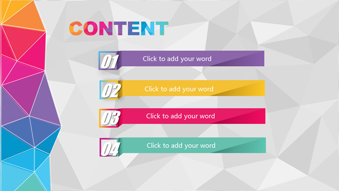 炫彩低面多边形通用PPT模板。一份多功能通用幻灯片模板,低面多边形效果规划,绚丽彩色配色,用途广泛。