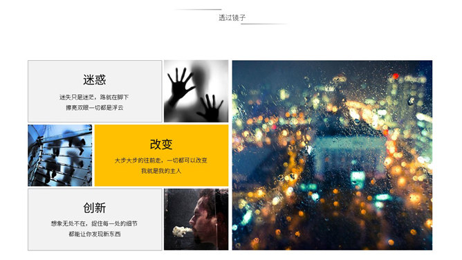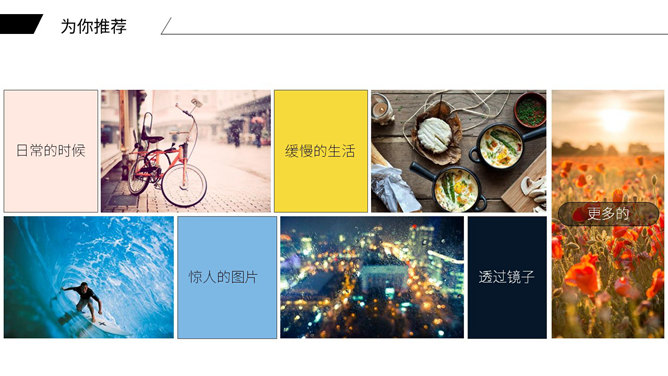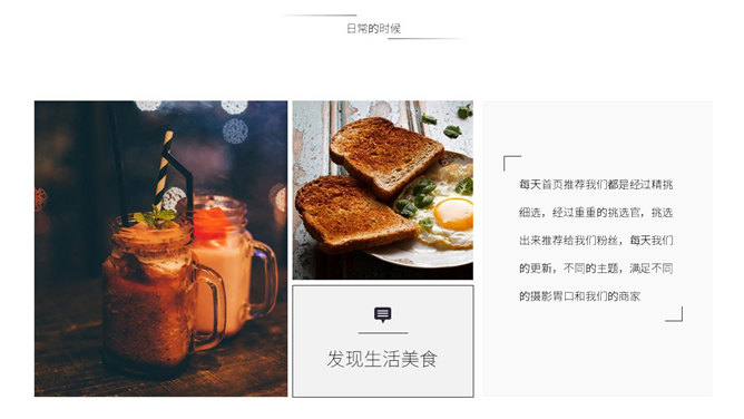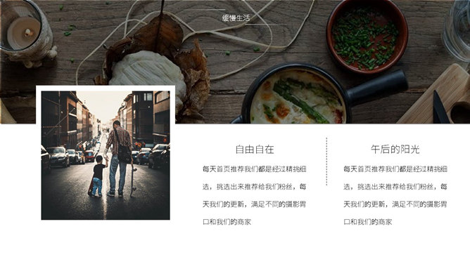 精巧动态图文排版PPT模板。这是一份摄影网站宣扬介绍PPT作品,以图文排版为主,在图文排版方面有借鉴价值。