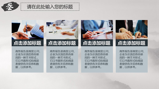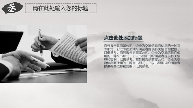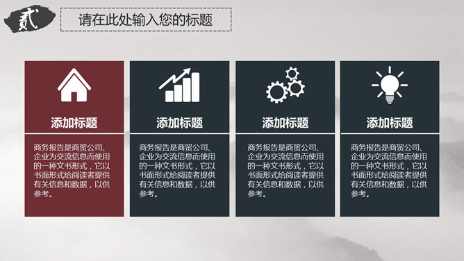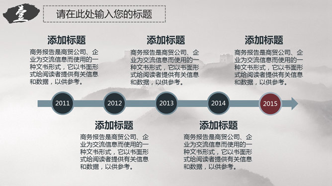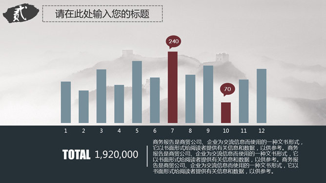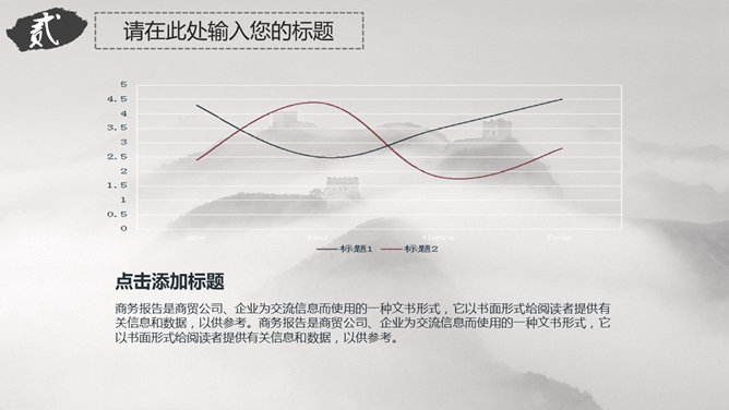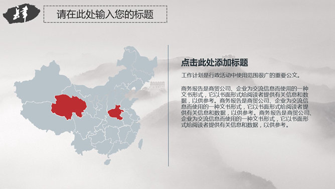大气中国古典古代修建PPT模板。一份古典中国风幻灯片模板,以恢宏庄严的中国古代修建为背景,合适中国传统文化相关的主题。建议安装字体:叶根友毛笔行书2.0版。