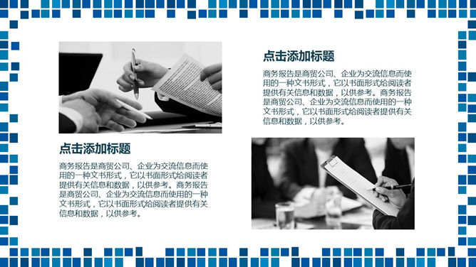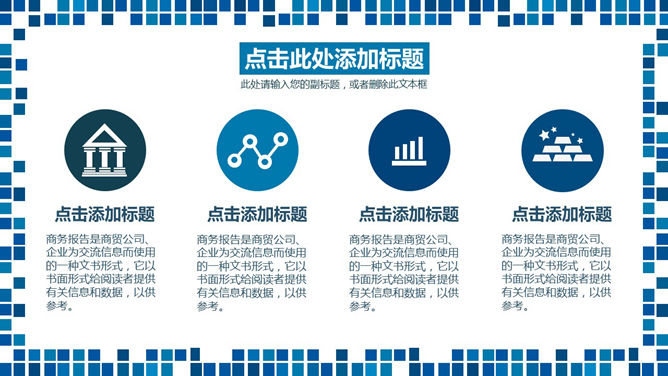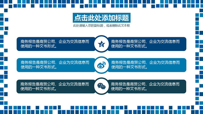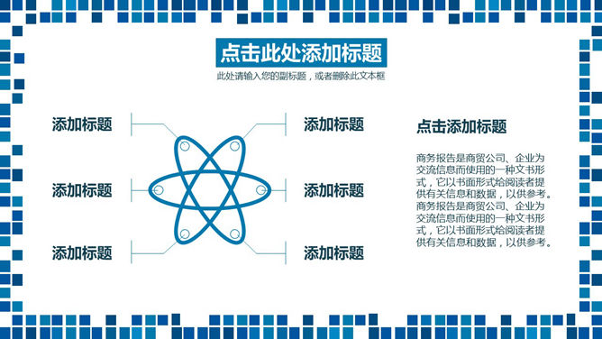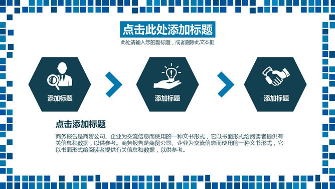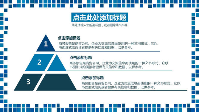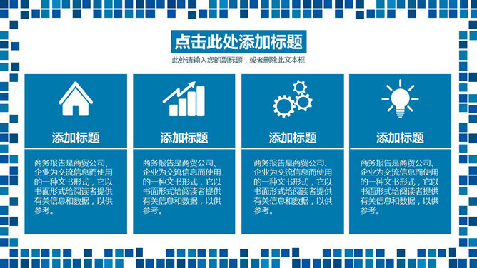 蓝色马赛克装修通用PPT模板。一份多功能多用途幻灯片模板,蓝色主色调,马赛克效果装修,用途广泛。