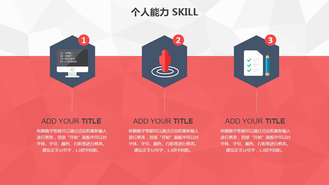 矢量扁平化个人简历PPT模板。一份个人简历幻灯片模板,采用矢量扁平化规划风格,很有规划感。