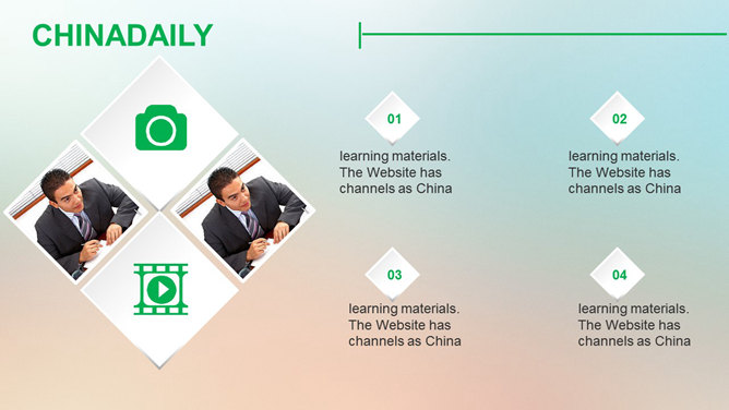 新鲜简洁微立体IOS风PPT模板。磨砂渐变苹果IOS风格布景,微立体作用图形元素,精约新鲜时尚。