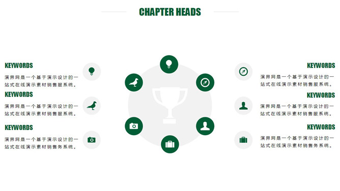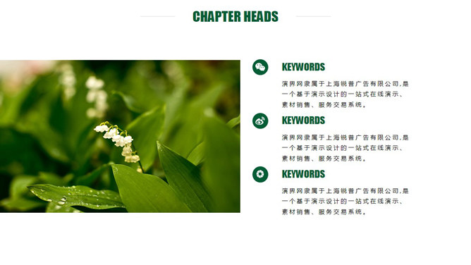 简约大方绿色通用PPT模板。一份绿色主色调的多用途通用幻灯片模板,设计风格简练大气,合适绿色环保、工作总结汇报、商务演示等用途。所用字体:造字工房言宋(非商用)惯例体、等线。