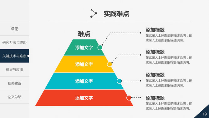 精巧有用动态论文答辩PPT模板。一份精巧有用的毕业设计论文答辩幻灯片模板,清新彩色配色,构思侧边栏导航,富丽炫酷动态播放作用,共37页,页面类型非常丰富强壮。