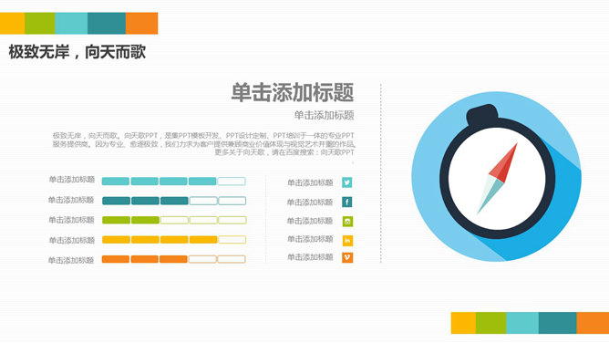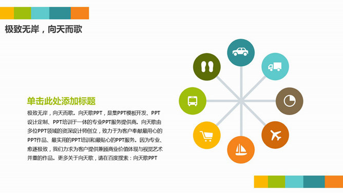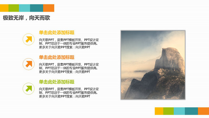 五颜六色新鲜通用PPT模板下载。一份多用途通用幻灯片模板,新鲜多彩五颜六色配色,封面页以三角形组成的几何图形装修。