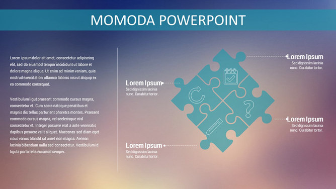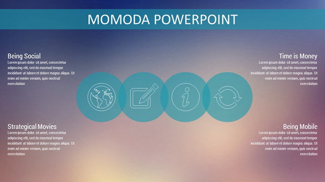 精美IOS苹果风格PPT模板下载。一份时尚好看的IOS苹果风格幻灯片模板,虚化布景,半透明文字和图形元素。所用英文字体:Roboto condensed、Roboto condensed light。