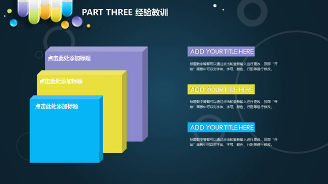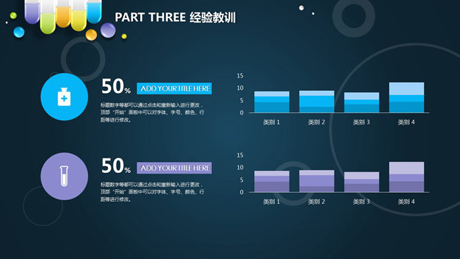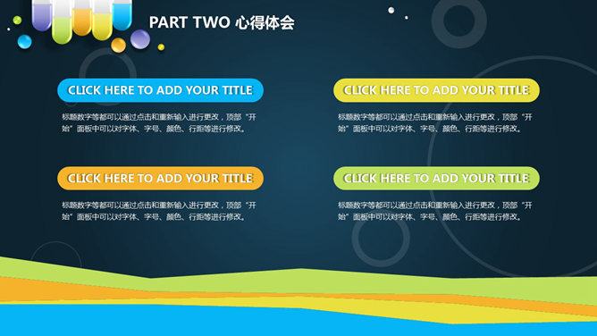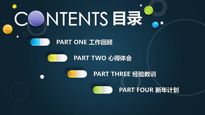 医药药品销售工作总结PPT模板。一份以药片、胶囊等药品形状的图形设计的幻灯片模板,配色鲜艳,合适医药研发、生产、销售等相关职业运用。