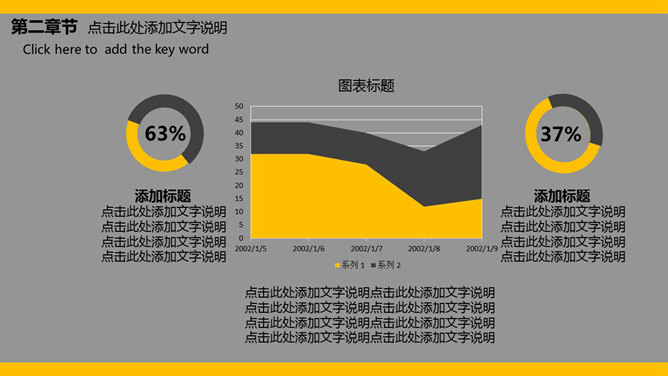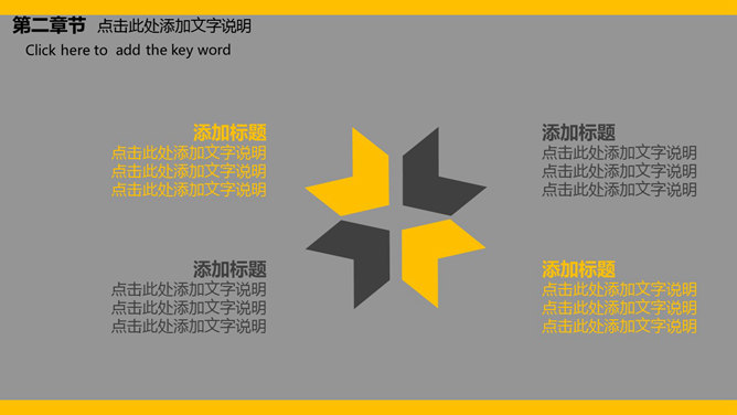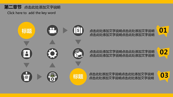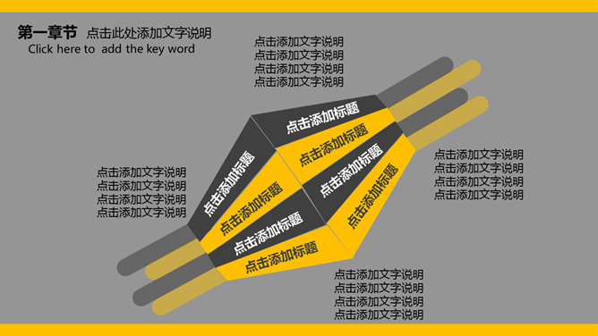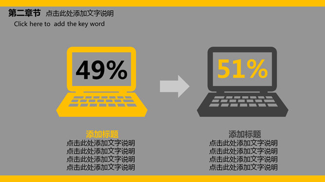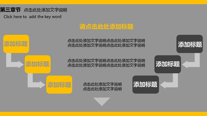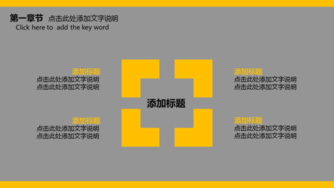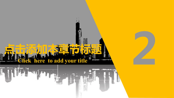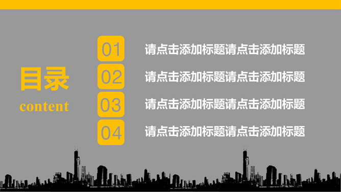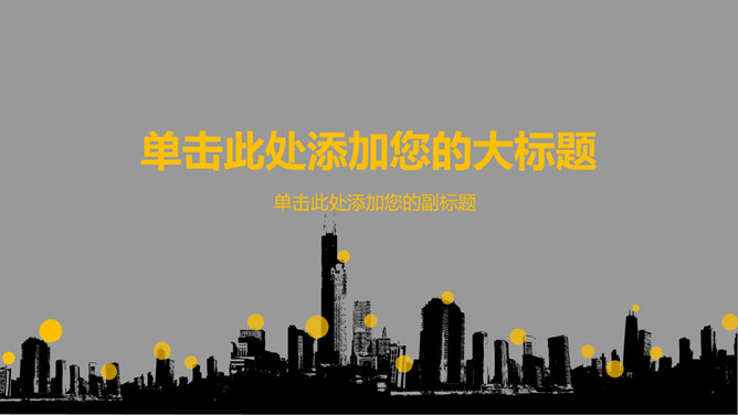 大气城市楼群剪影PPT模板。一份以城市楼群剪影为布景的幻灯片模板,灰色布景黄色配色,合适建筑地产行业运用。