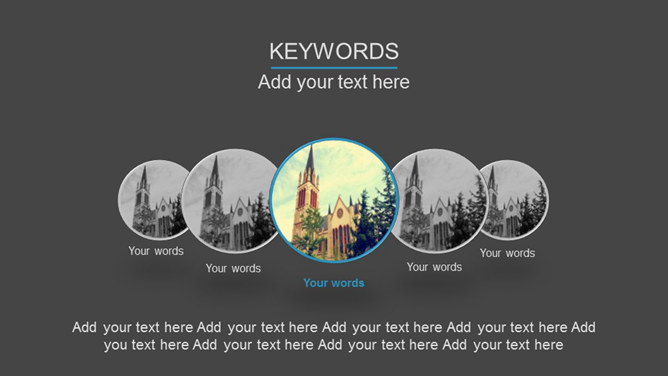 极简圆形圆圈装饰PPT模板。深灰色背景,圆圈圆形泡泡装饰,素雅特别,适合场合广,通用性强。
