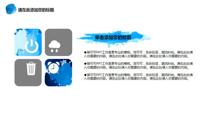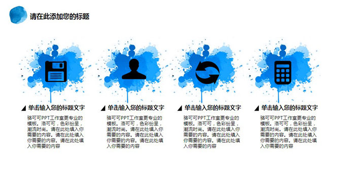 泼墨墨迹艺术作用PPT模板。一份有创意的幻灯片模板,以墨迹泼墨作用装饰设计,精约清新,通用性强。