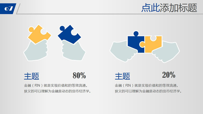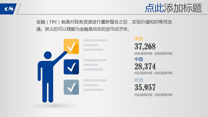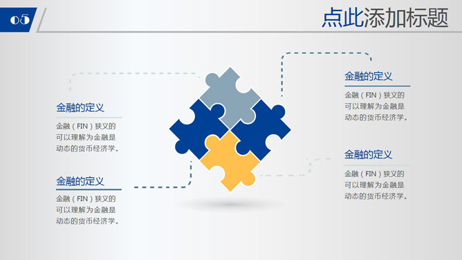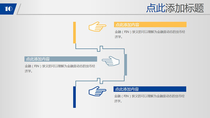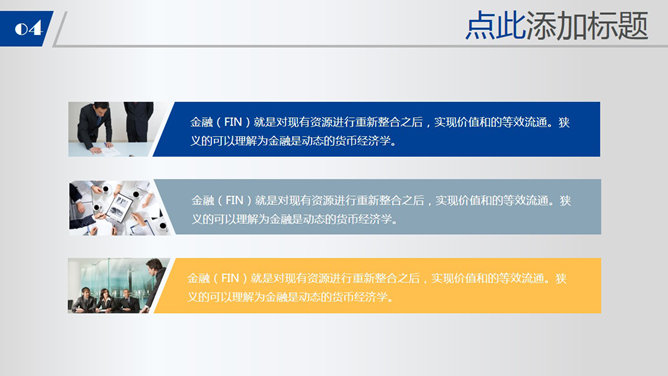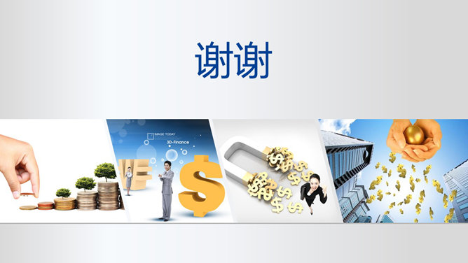 金融理财职业通用PPT模板。大气灰色背景,蓝黄配色,运用美元符号、金蛋、金币等经济金融类的图片装修。