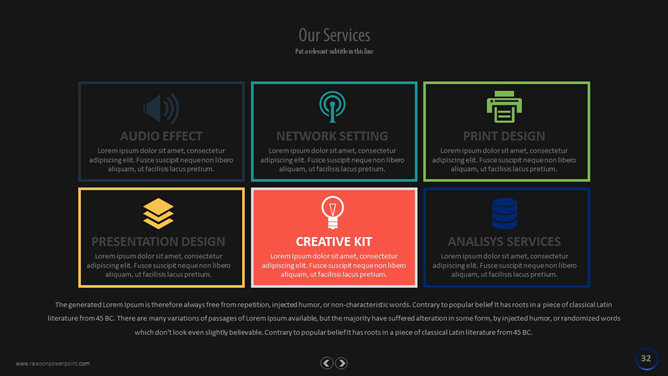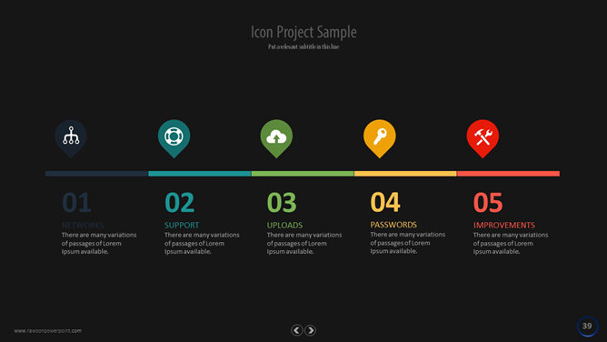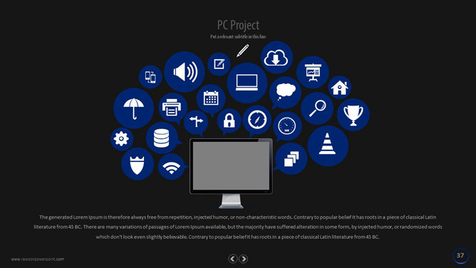 一份国外的不容错失的幻灯片模板,黑灰色布景,极简风格,共120页,页面丰富,功能超强,更多页面请下载观看。