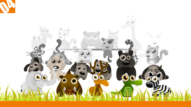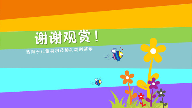 一份以五颜六色条纹为背景的动态效果的卡通PPT模板,以小花、小草和各种小动物为主题元素,适合与儿童相关的主题。