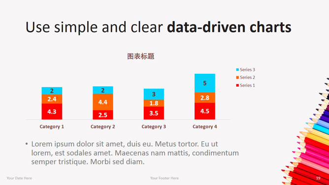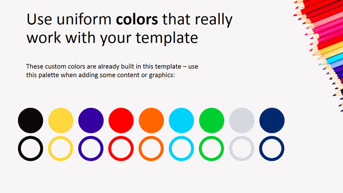 精巧五颜六色铅笔主题PPT模板。一份以五颜六色铅笔为主要元素设计的幻灯片模板,可用于儿童教育教育课件运用。