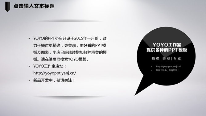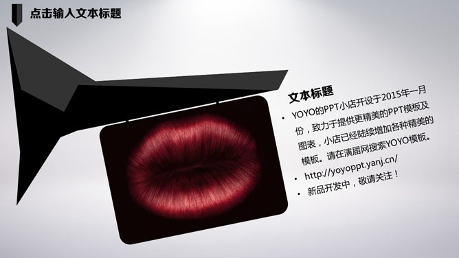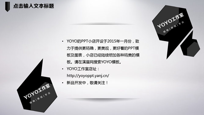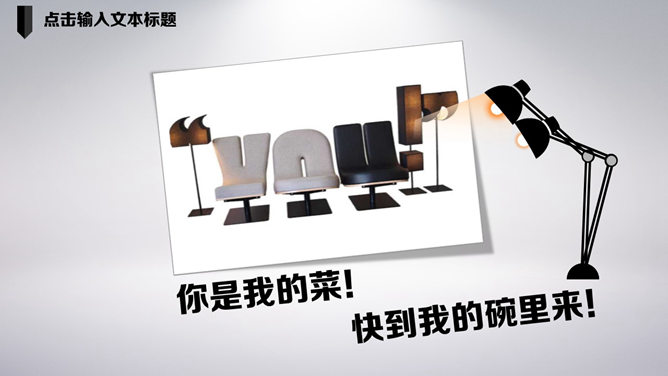 一份非常好看的PPT模板,灰色背景,纯黑色主色调,构思的设计,精美的版面,动态播放作用,适合艺术构思类主题。使用字体:方正正大黑简体。