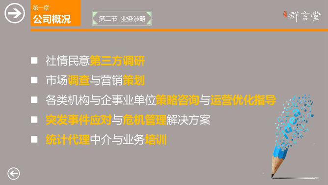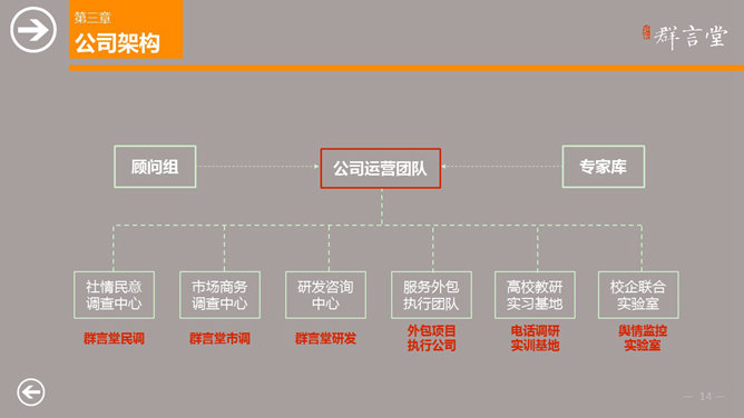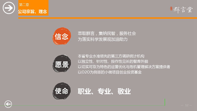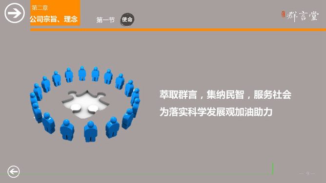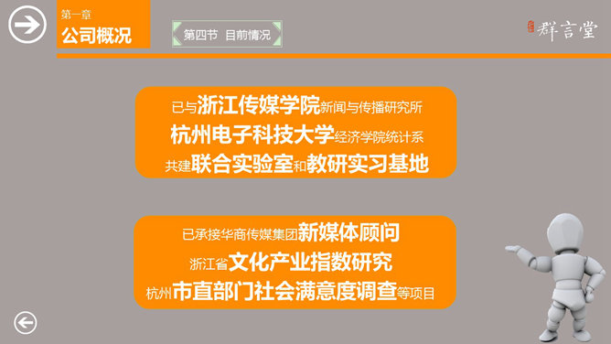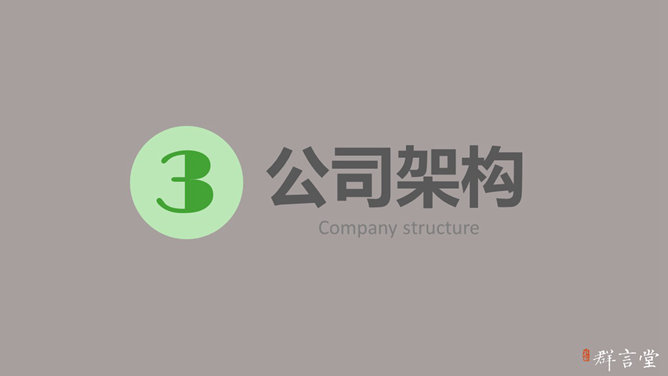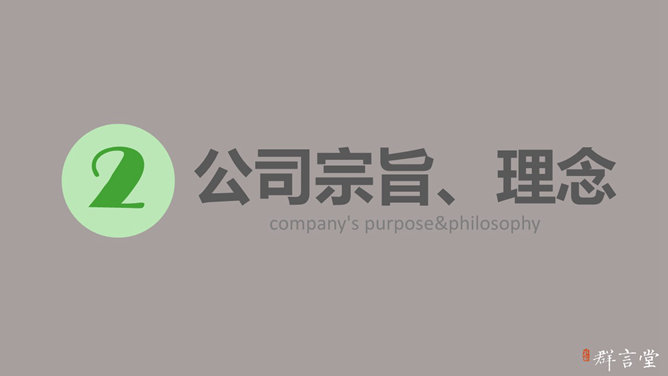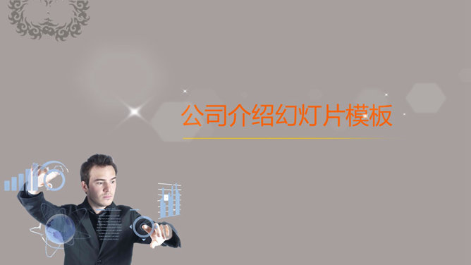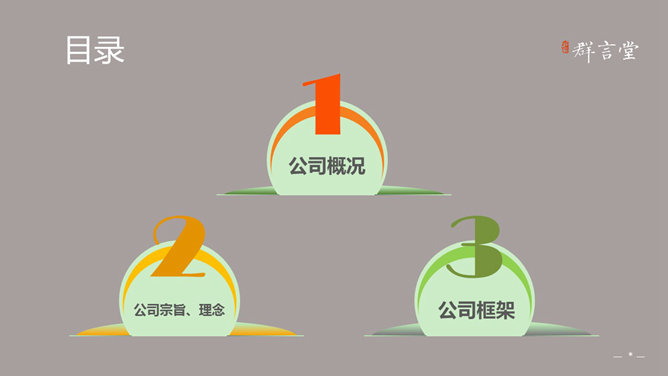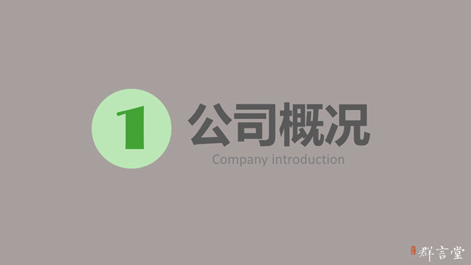 一份商务风格的公司简介PPT模板,大气灰色布景,动态播映作用,包括公司概况、公司主旨理念、公司框架等内容。