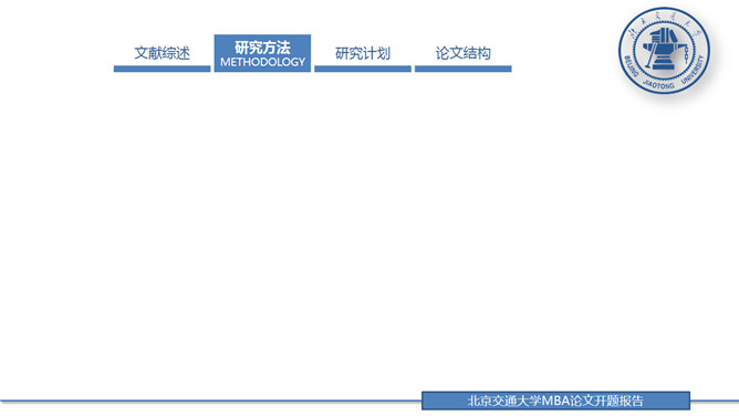 一份通用结业论文答辩开题报告PPT模板,白色底色,蓝色主色调的严谨学术风格,校园标志可以替换,换成你的就行了。使用字体:华康俪金黑W8(P)。