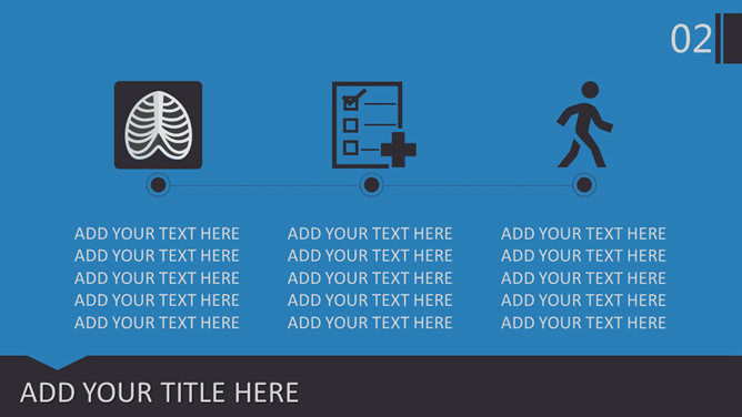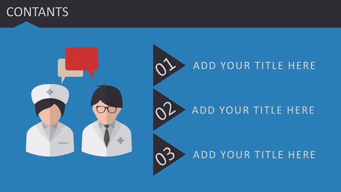 一份精巧医学医疗医药主题的幻灯片模板,蓝色主色调,扁平化的设计,动态播映作用,可用于制造医院总结汇报PPT。