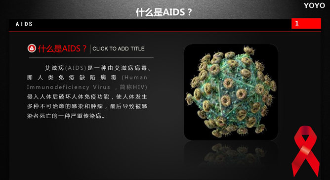一份预防艾滋病公益宣传PPT动画。人们把艾滋病称为:21世纪的瘟疫!超级癌症!自艾滋病流行以来已有2200万人死亡,对立AIDS我们需要你的一臂之力。