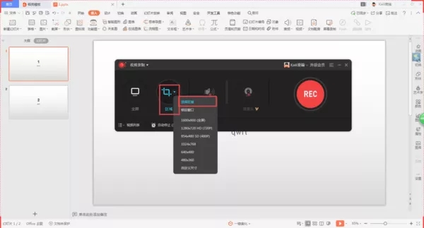 第五步,在弹出的视频录制东西当中,你既能够进行全屏录制,也能够进行指定区域的录制。咱们点击区域右侧的【▽】,然后挑选【挑选区域】。