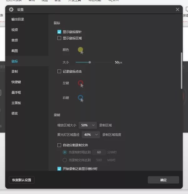 第七步,录制区域挑选完成后,假如你想要录制鼠标的指针的话,点击视频录制软件界面右上角的【三】图标,进入到设置界面后,咱们挑选【鼠标】选项,然后勾选【显现鼠标指针】选项就能够了。