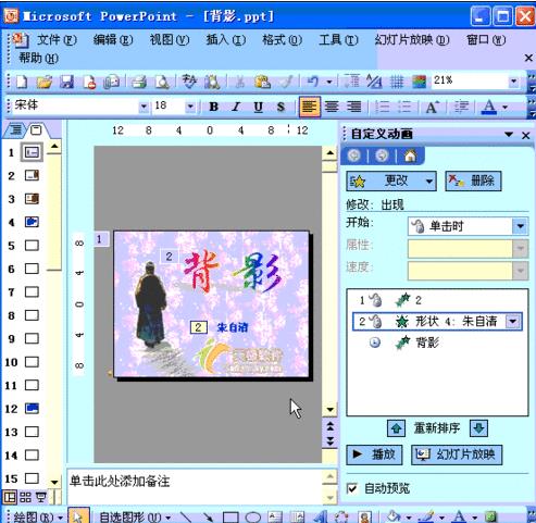 b、自定义动画只能针对独立的文本框或图片,想有炫酷的课件作用,只能一个个增加文本框。